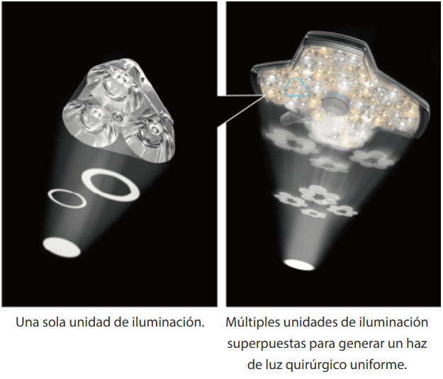 Se puede lograr un campo luminoso sumamente pequeño con un área mínima de 14 cm para adecuarse a las necesidades de determinadas cirugías.